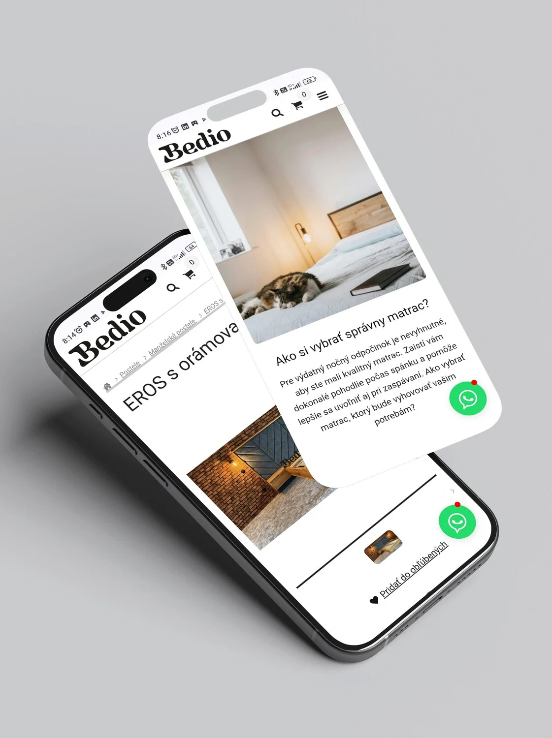 Bedio, výrobca spálňového nábytku na mieru, potreboval plne funkčný a moderný e-shop na predaj svojich produktov – od postelí a nábytku na mieru až po doplnky ako matrace, rošty či vankúše. Projekt bol špecifický tým, že klient už mal hotový dizajn a hľadal spoľahlivého partnera, ktorý sa postará o jeho technickú realizáciu. Našou úlohou bolo nielen vytvoriť funkčnú platformu, ale tiež pridať praktické riešenia, ktoré zákazníkom zjednodušia nákup a klientovi uľahčia správu obchodu.
