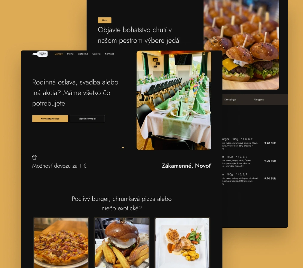 - Technická realizácia webu: Vyvinuli sme responzívnu a spoľahlivú stránku tribunapubnovot.sk, ktorá je prispôsobená na všetky zariadenia – od počítačov po mobilné telefóny. Web obsahuje prehľadné sekcie: Domov, Menu, Catering, Galéria a Kontakt.